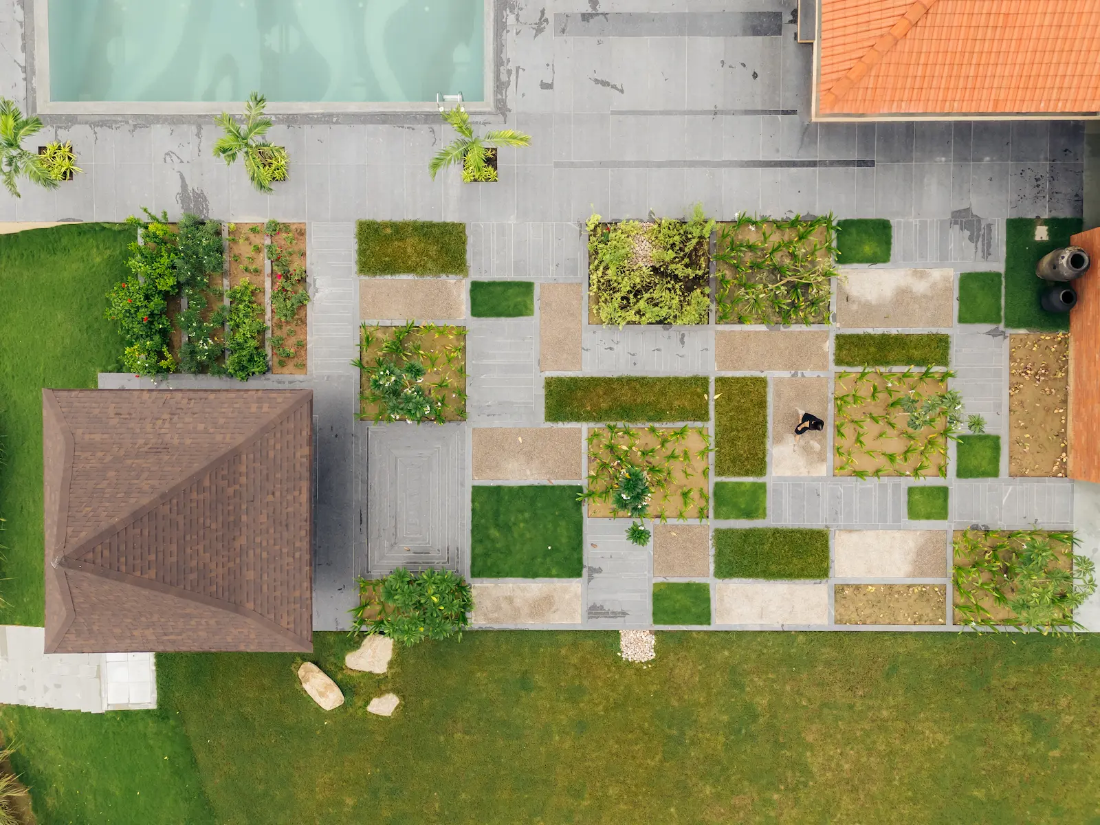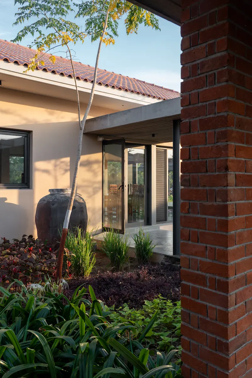The design fosters a strong connection between architecture and landscape, both at the macro scale of the overall site and within the micro scale of intimate courtyard spaces. Boundaries between built form and nature are dissolved, creating a seamless flow where the outdoors extends into the interior, and internal courtyards bring light, air, and greenery deep into the home—encouraging residents to engage with the natural environment from every space.