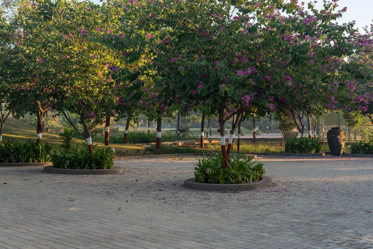The project envisions the regeneration of a tranquil, environmentally conscious retreat — an oasis of calm designed to reconnect residents with nature within an urban setting. At the arrival plaza, a majestic banyan tree anchors the design as a living landmark. Layered planting, textured materials, and carefully choreographed pathways guide visitors through an enchanting landscape sequence, setting the tone for a cohesive and contemplative journey.