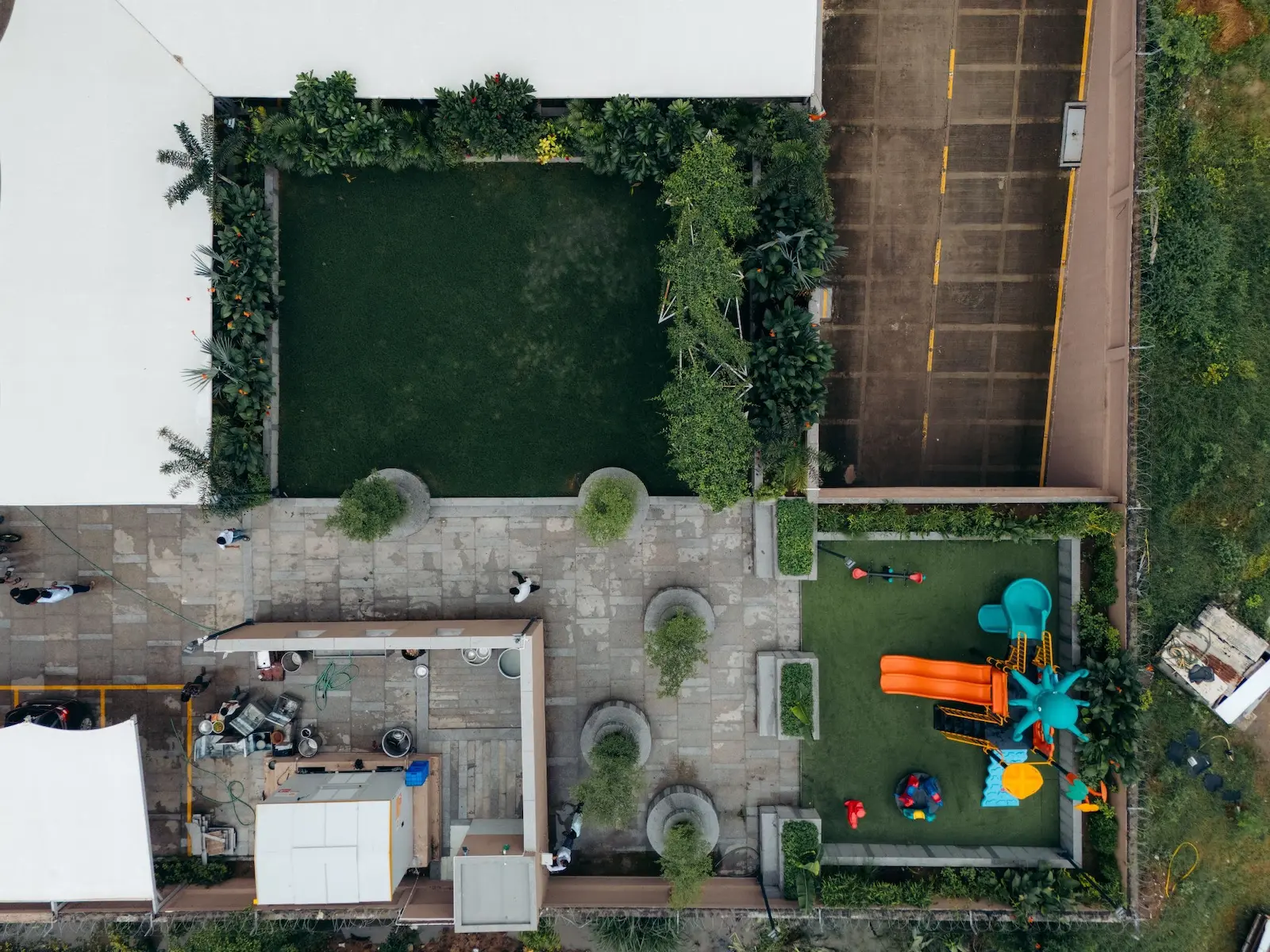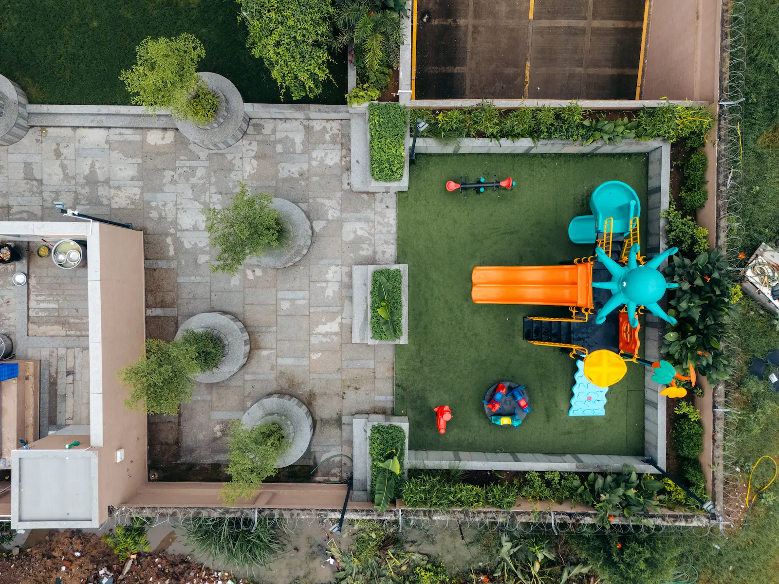 Despite its modest size, the space becomes an active social node within the society—offering a balance of greenery, openness, and a distinctive element that brings identity to the community’s shared outdoor environment.