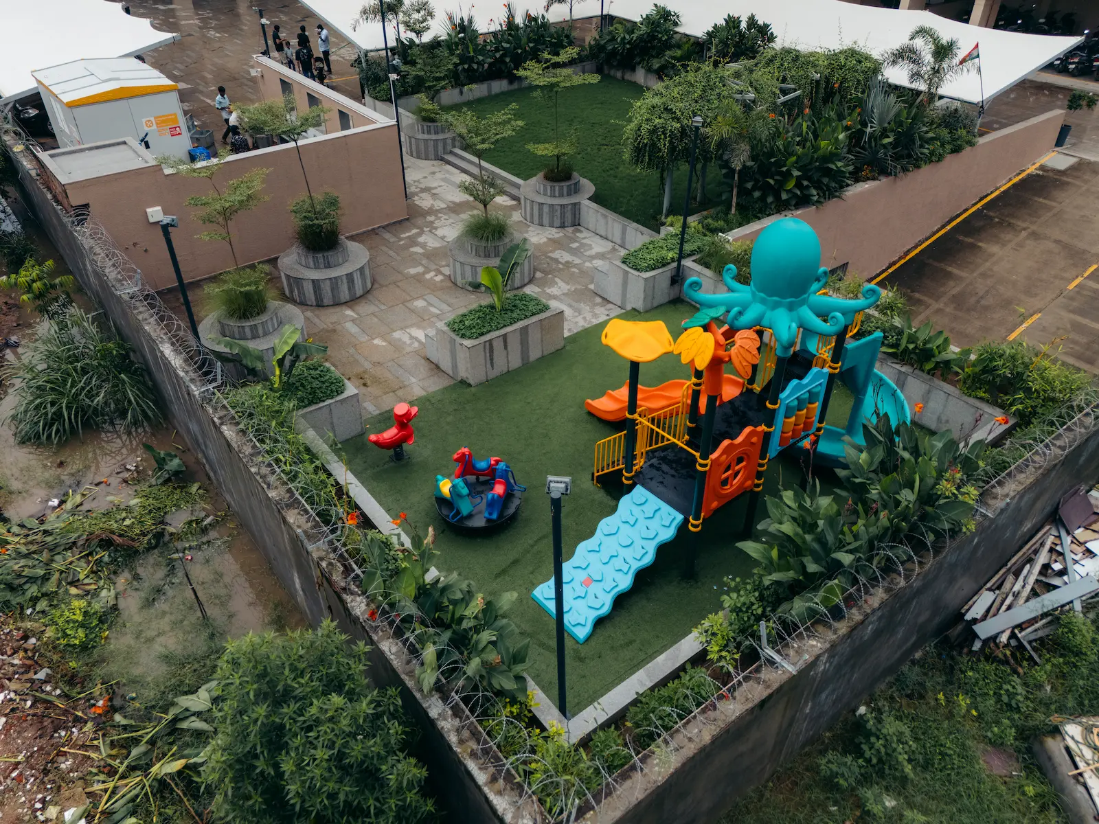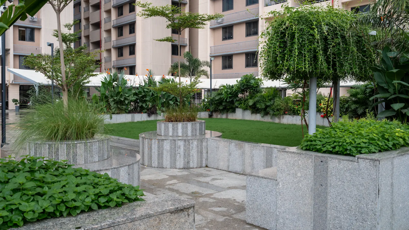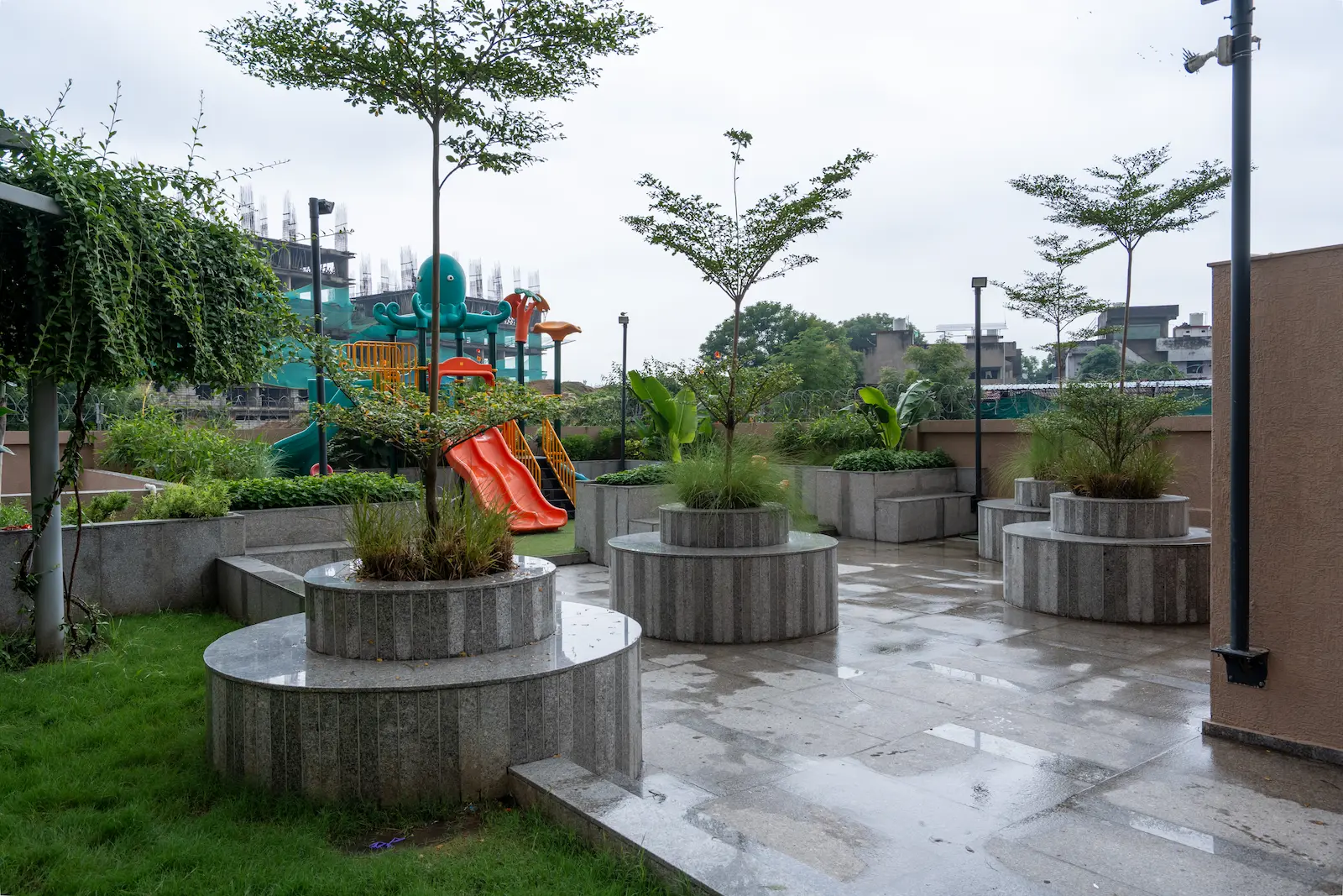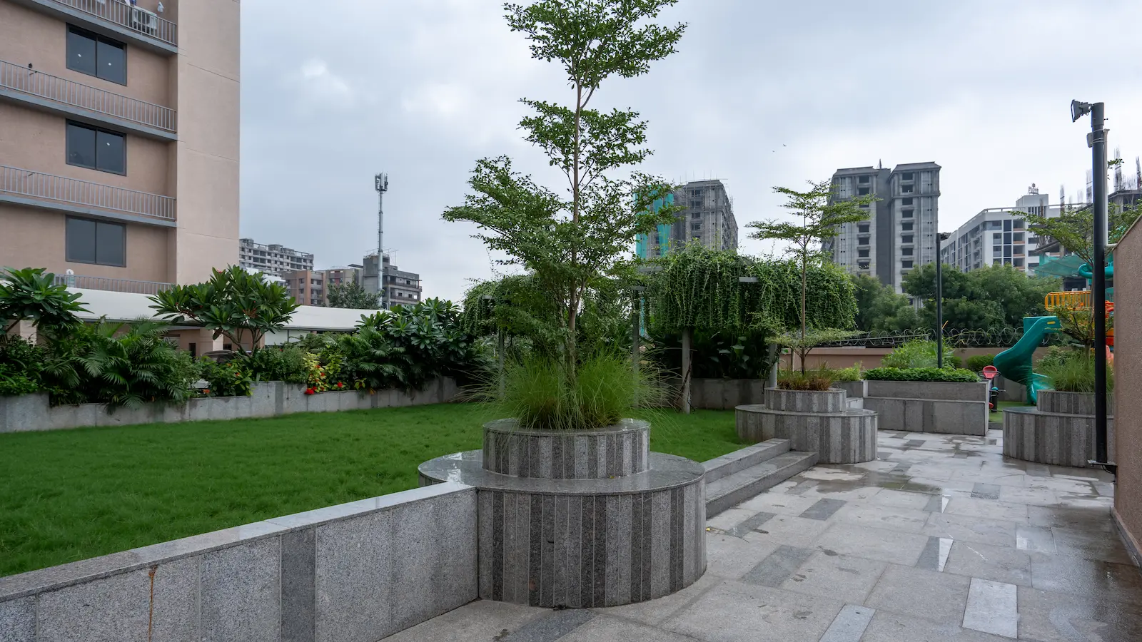 Nestled within the dense urban fabric of old Ahmedabad, this compact community space within a housing society was envisioned as a shared environment for residents of all age groups. In a neighborhood where open spaces are limited, the design focuses on creating a welcoming and inclusive place that encourages interaction, relaxation, and everyday community life.