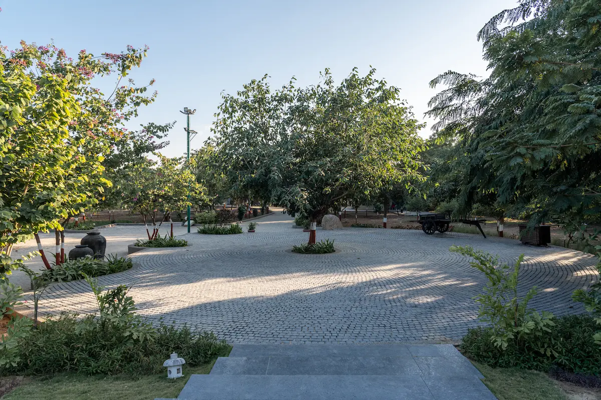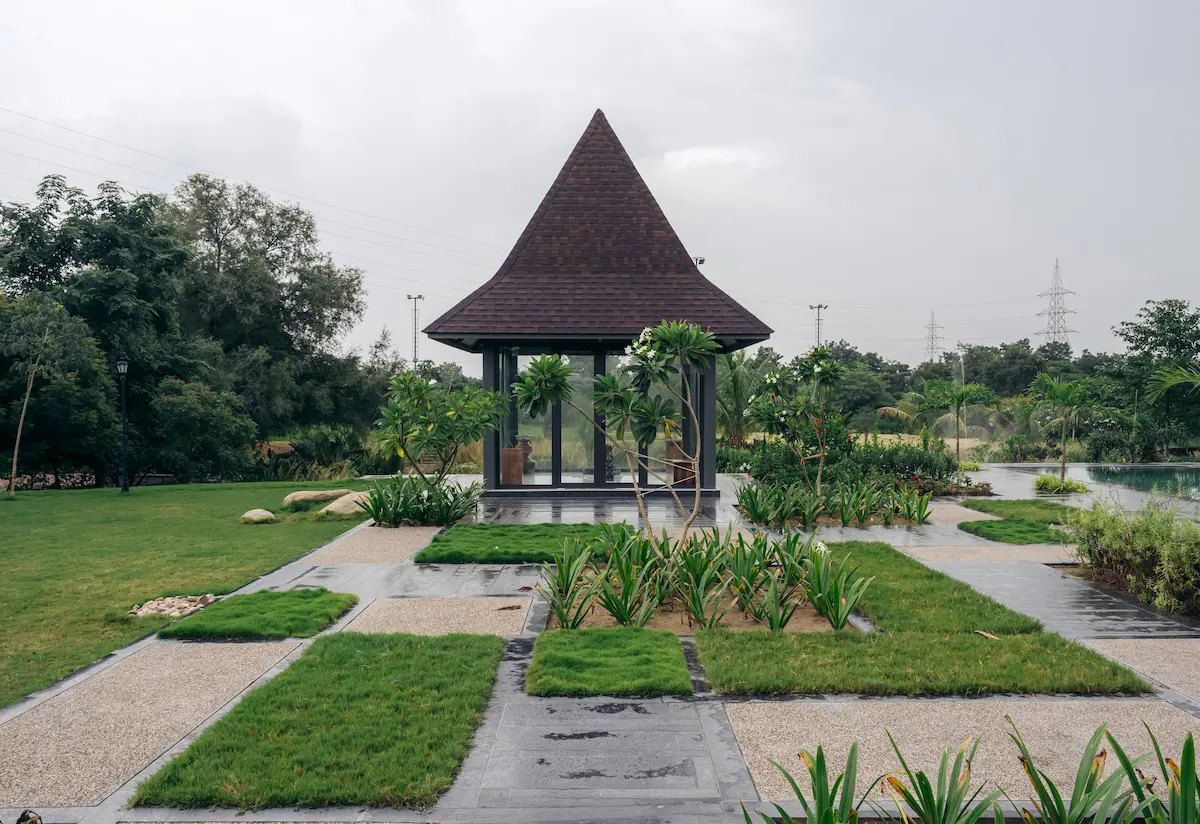 The project envisions the regeneration of a tranquil, environmentally conscious retreat — an oasis of calm designed to reconnect residents with nature within an urban setting. At the arrival plaza, a majestic banyan tree anchors the design as a living landmark. Layered planting, textured materials, and carefully choreographed pathways guide visitors through an enchanting landscape sequence, setting the tone for a cohesive and contemplative journey.